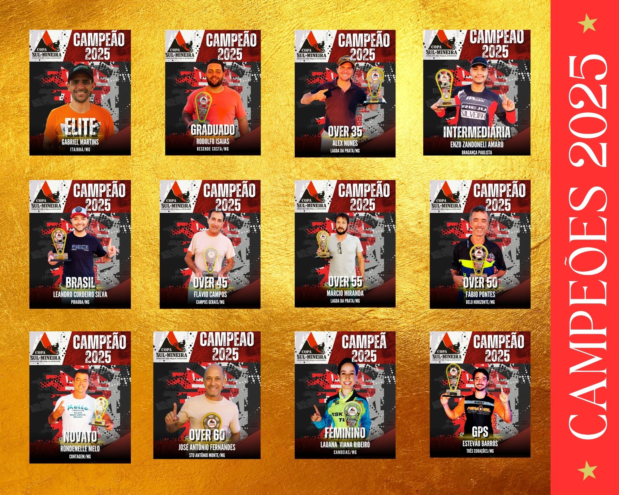 OS CAMPEÕES DA COPA AMSM 2025 – Emoção, técnica e superação em cada trilha! A temporada 2025 da Copa AMSM de Enduro de Regularidade consagrou os melhores pilotos do Sul de Minas e de todo o Brasil. Uma jornada marcada por estratégia, preparo físico e paixão pelas trilhas. Conheça os grandes campeões que brilharam em suas categorias: Categoria ELITEGabriel Martins – Itajubá/MGVelocidade e precisão definem o campeão da elite do enduro mineiro. Categoria GRADUADORodolfo Isaías – Resende Costa/MGRegularidade impecável e foco absoluto nas [...]