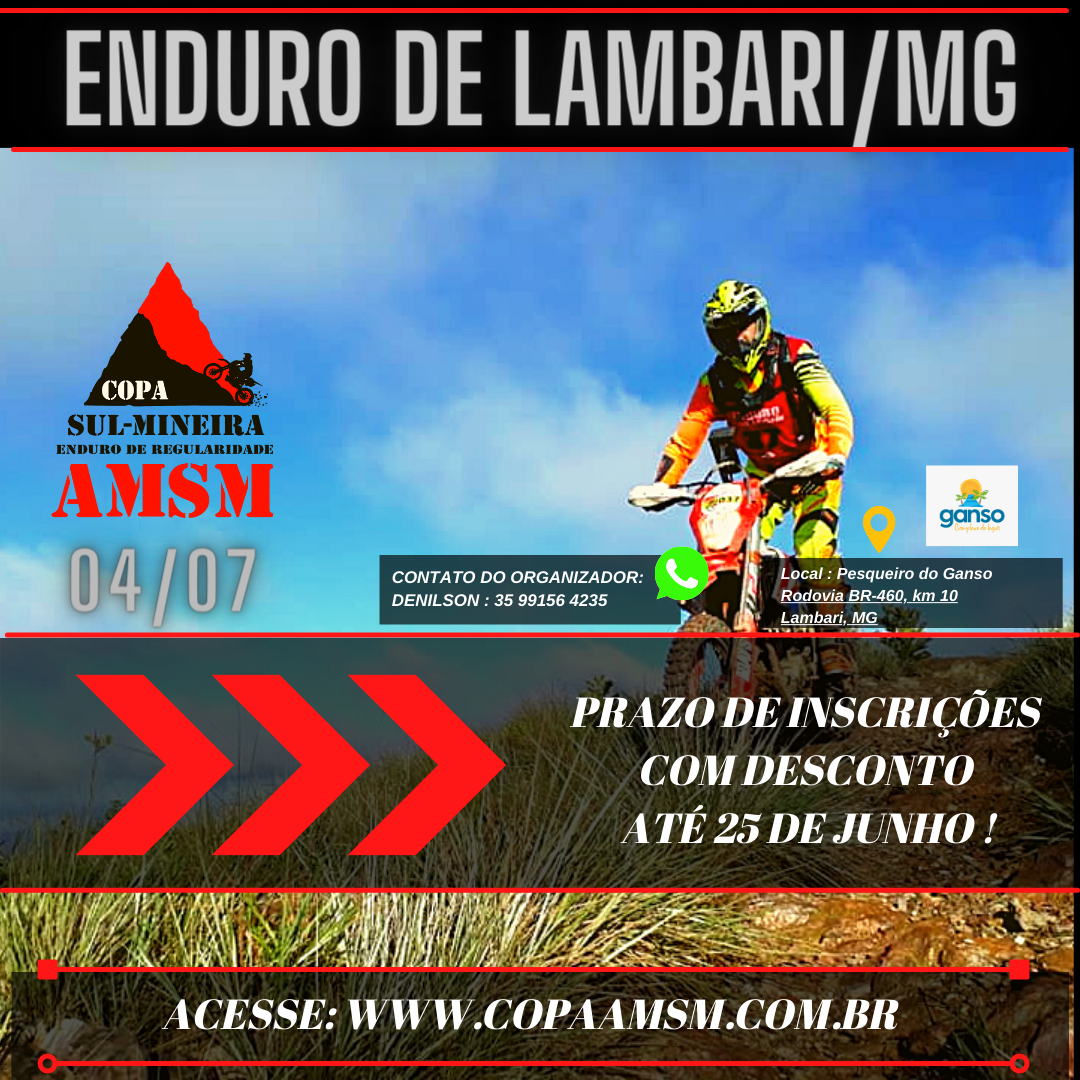 Inscrições agora comprovante via Whatsapp 31 99202 2300, ou 35 99843 7881.